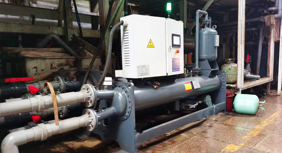 水冷冷水機(jī)利用殼管蒸發(fā)器使水與冷媒進(jìn)行熱交換,冷媒系統(tǒng)在吸收水中的熱負(fù)荷,使水降溫產(chǎn)生冷水后,通過(guò)壓縮機(jī)的作用將熱量帶至殼管式冷凝器,由冷媒與水進(jìn)行熱交換,使水吸收熱量后通過(guò)水管將熱量帶出外部散失。